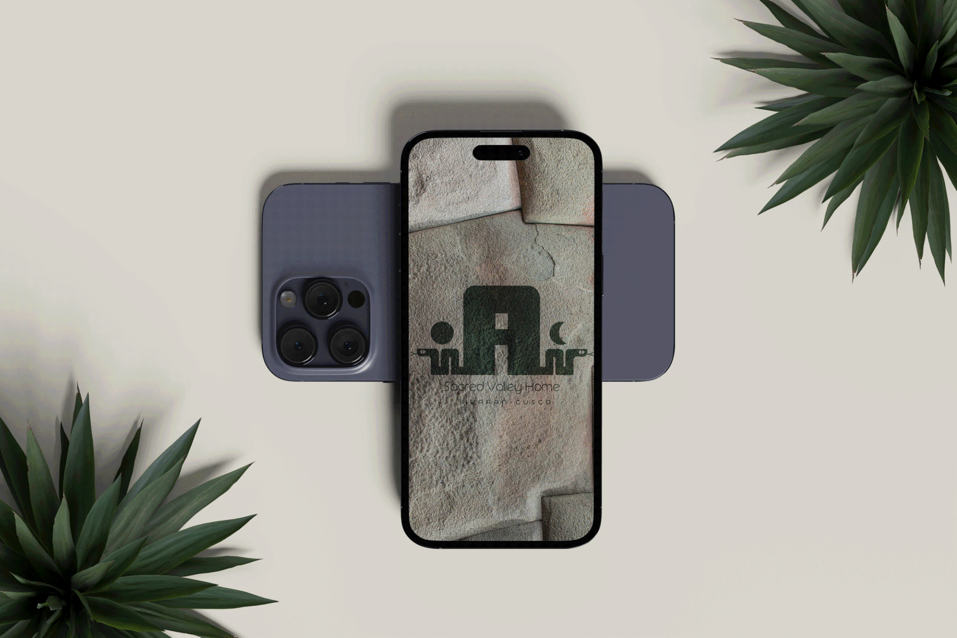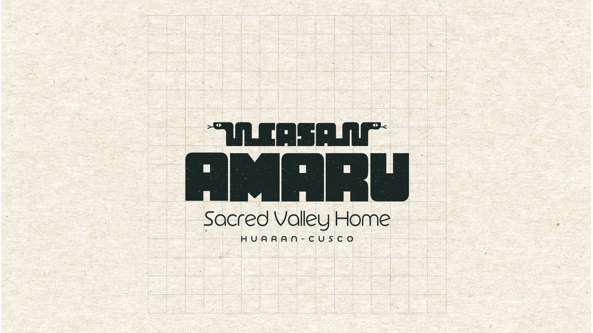 El isotipo de Casa Amaru fusiona elementos andinos y espirituales. La "A" central simboliza un refugio y la apertura a nuevas experiencias, mientras que las serpientes representan la transformación y la conexión espiritual. Los elementos cósmicos