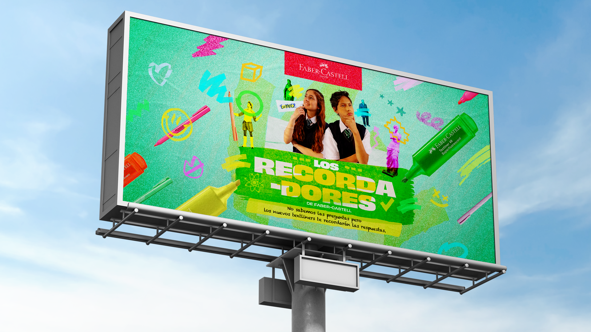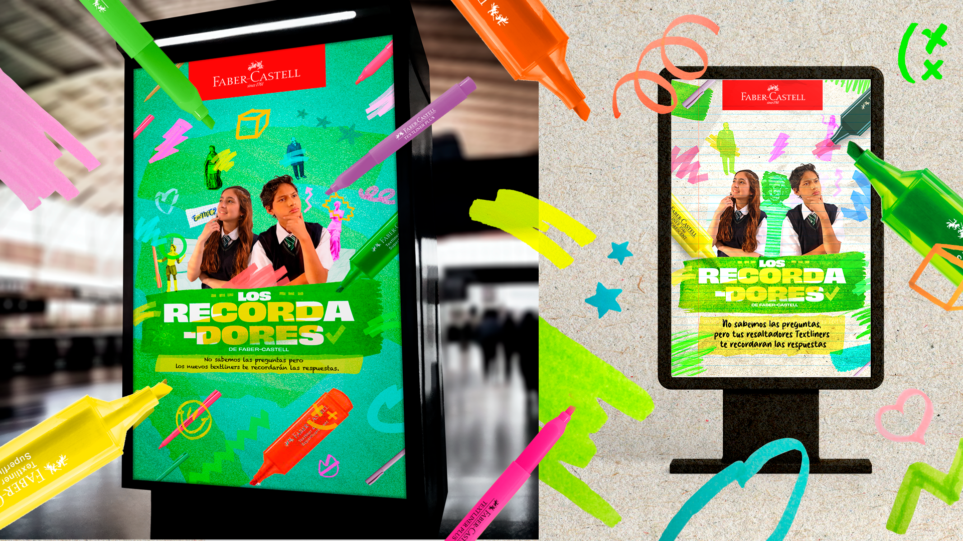Ejecución: La campaña se centra en momentos icónicos de estudio y examen. Mostramos a estudiantes enfrentándose a la clásica tensión de un examen, mirando al techo en un intento desesperado de recordar información crucial. Aquí, la magia de los textliners de Faber-Castell se manifiesta: lo que está resaltado, permanece en la memoria.